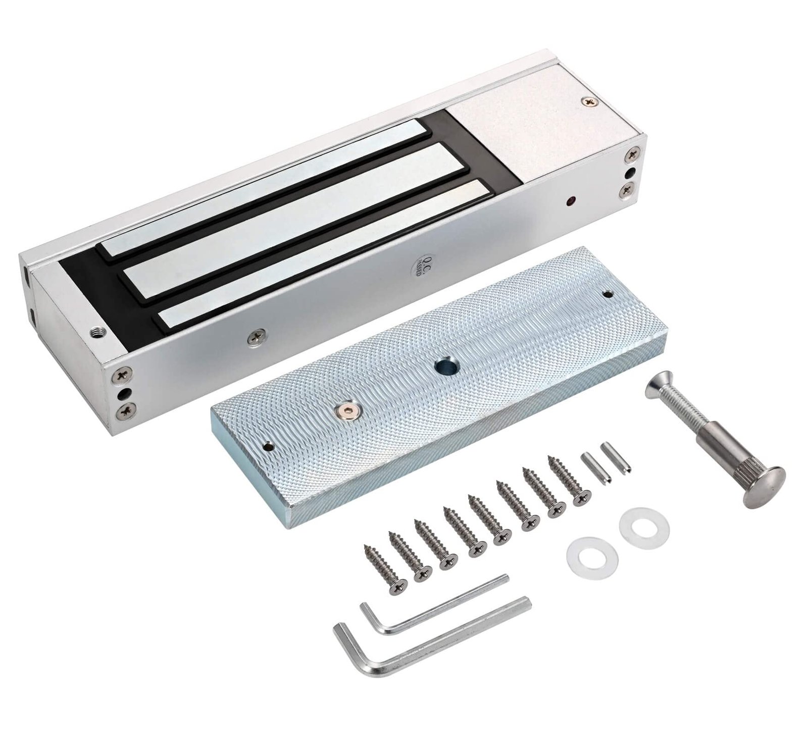 This magnetic lock features a fail-safe mechanism, meaning it automatically unlocks when power is disconnected, ensuring safety during emergencies and power failures.