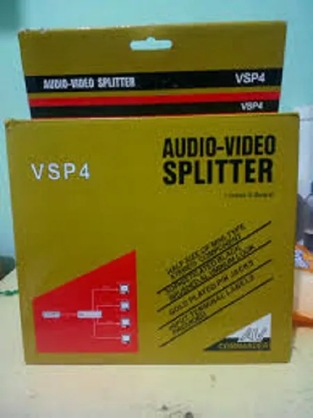 High-quality 4-port audio video splitter for TV, LED displays, speakers, and movie setups. Ensures clear signal distribution to multiple devices. Ideal for home entertainment systems and professional AV setups.
