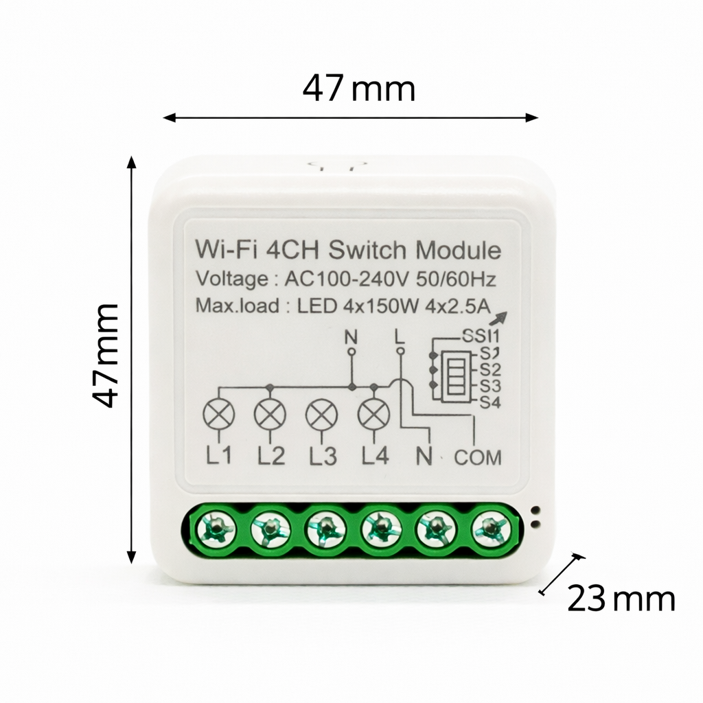 Suitable for homes, offices, hotels, and large automation projects, the Mini Smart WiFi Switch 4CH ensures efficiency, reliability, and seamless smart control.
