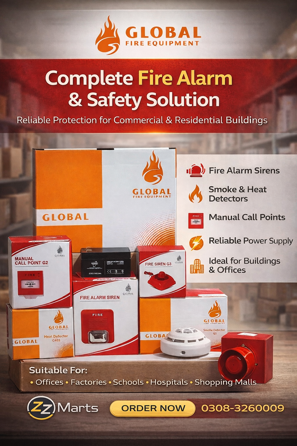 This system is available in 2-Zone, 4-Zone, and 8-Zone packages, making it suitable for small shops, offices, warehouses, factories, schools, and multi-floor buildings. Each package includes carefully selected components to ensure complete fire protection coverage.