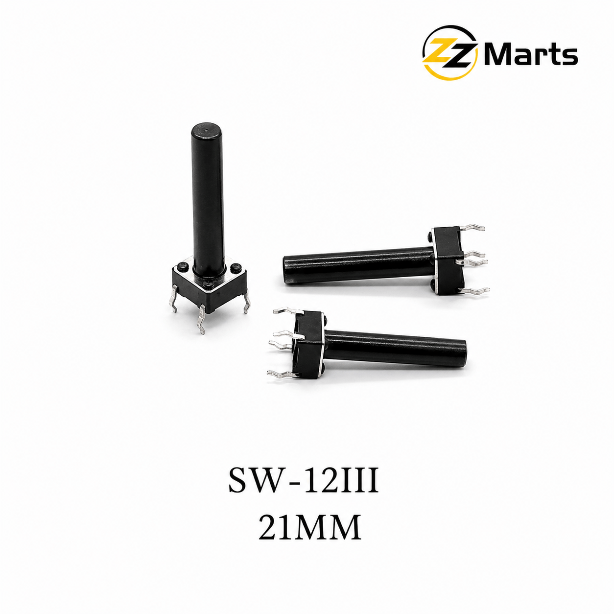 The Tactile Push Button Switch 21mm Long Shaft (SW-12III) is an extra-long actuator tactile switch, designed for applications where maximum button reach is required.