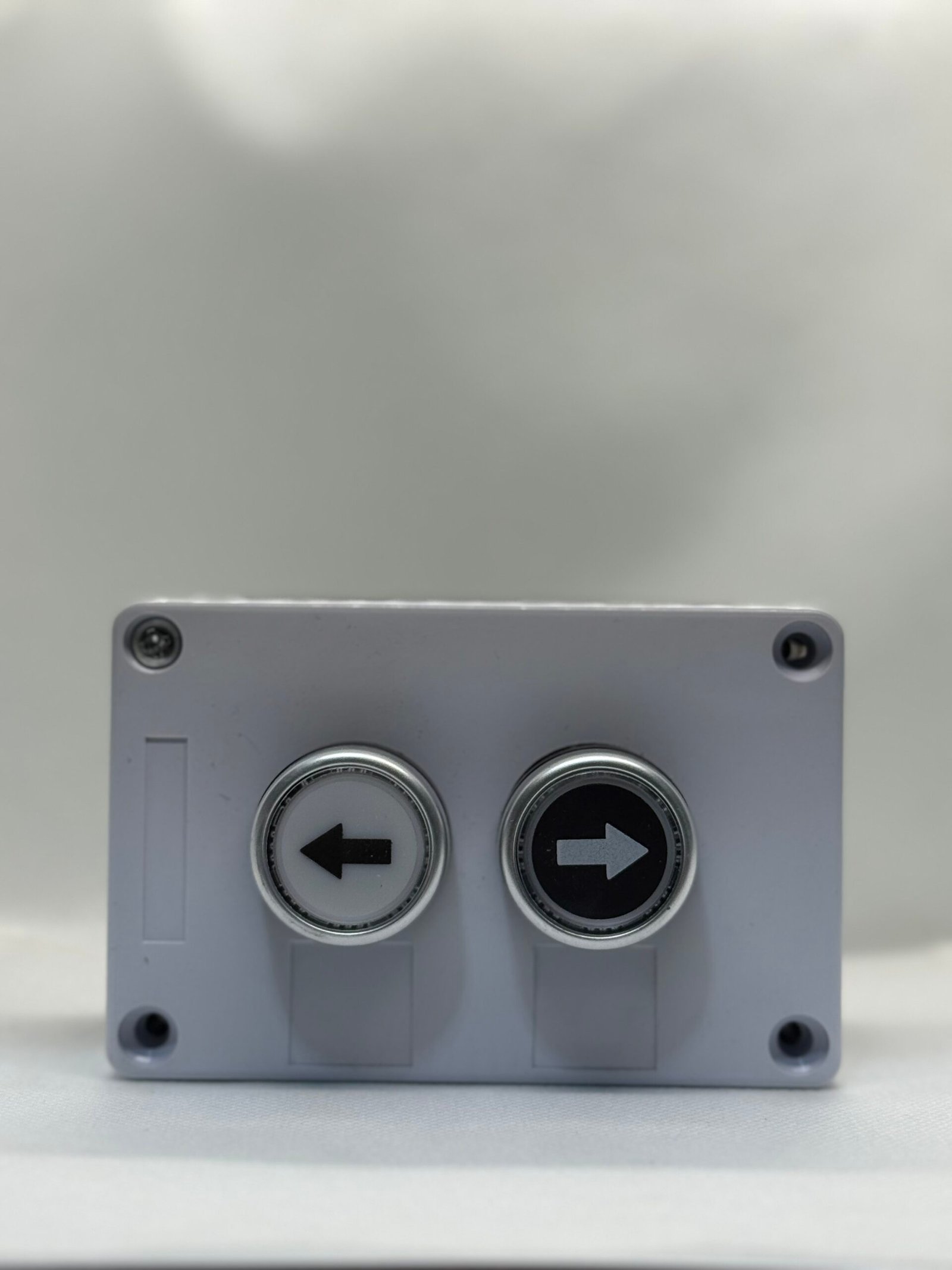 The unit is housed in a durable plastic enclosure, providing protection against dust and daily industrial use. Its compact and ergonomic design allows for easy wall or panel mounting, while the bold arrow symbols ensure quick identification and safe operation.